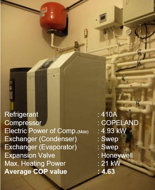 a test bench is installed to measure COP values of both GSHP and WSHP with EN14511 & EHPA (European Heat Pump Association) standards.